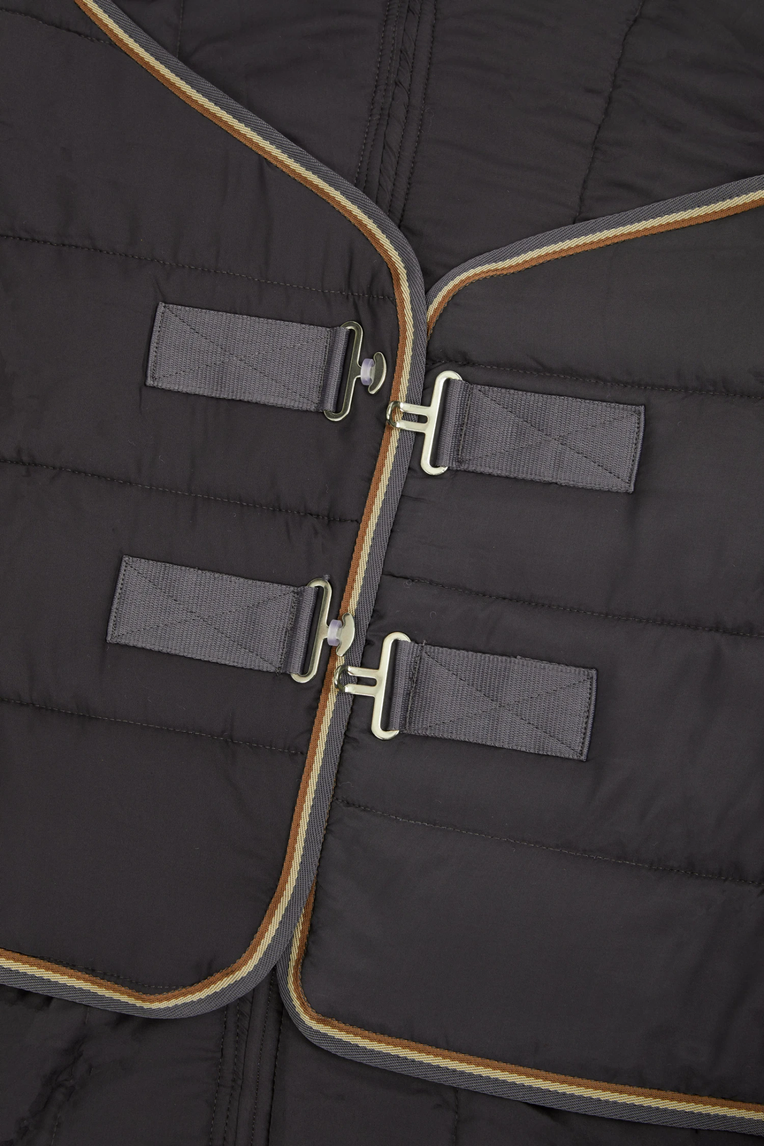 Diese mittelschwere Unterdecke kann allein oder in Kombination mit einer Regendecke getragen werden. Das leichte, atmungsaktive Material ist mit einer Anti-Rutsch-Oberfläche ausgestattet. Zusätzliche T-Schnallen, Kreuzgurte und ein Schweifriemen halten die Decke in Position. Das Kunstfell am Widerrist ist super weich und sorgt für Komfort. Ein zeitloses Design macht sie zu einem jahrelangen, treuen Begleiter.