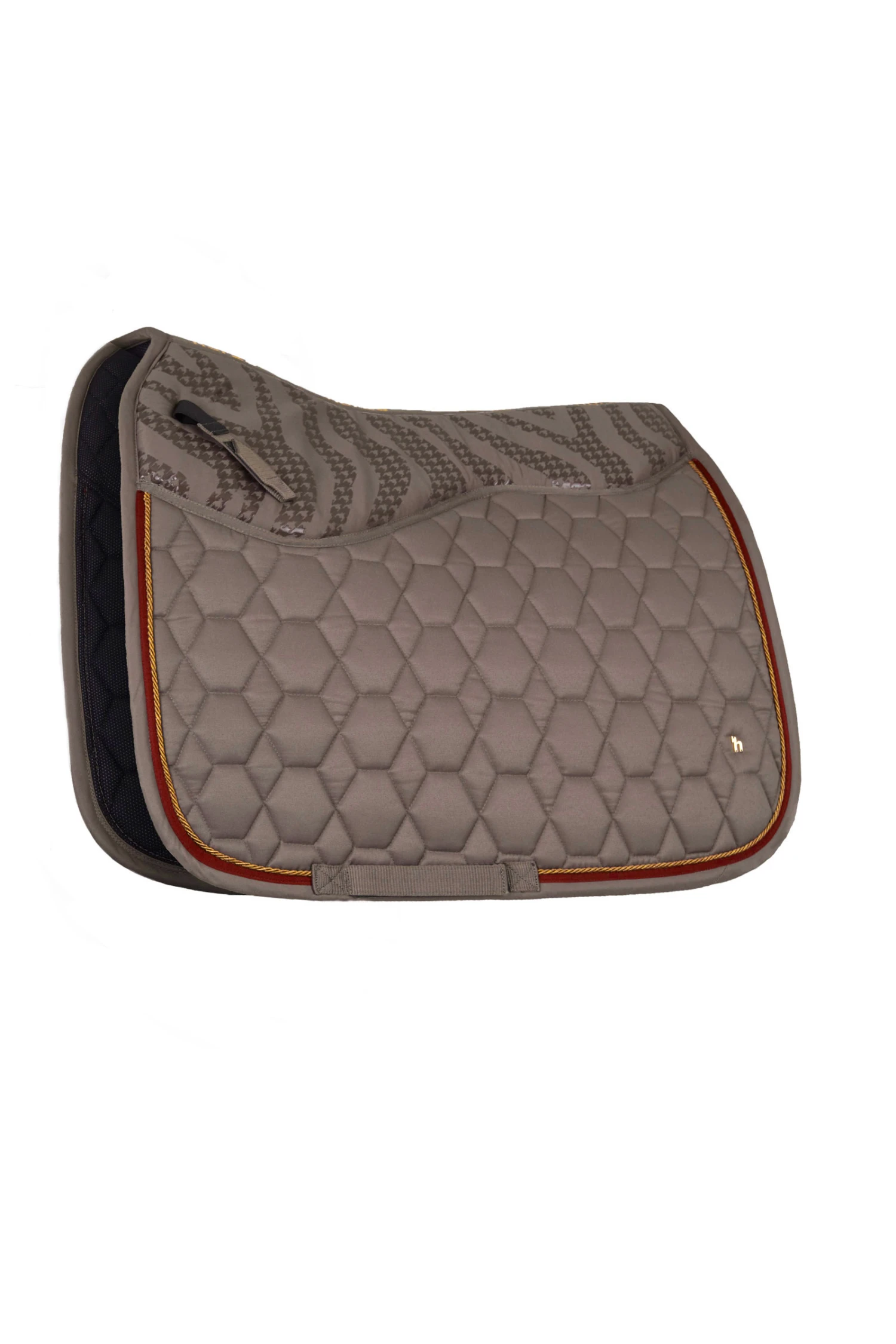 Die anatomisch geschnittene Horze Kenya Schabracke ist mit einem Silikondetail ausgestattet, das ein Verrutschen des Sattels verhindert. Eine leichte Polsterung unterhalb des Sattels sorgt für zusätzlichen Komfort. Das feuchtigkeitsableitende Futter hält den Rücken deines Pferdes trocken. Drei Paspelreihen und das zeitlose Design sorgen für einen klassischen Look. Metallic-Details sorgen für einen eleganten Look. Kombiniere diese Schabracke mit dem Rest unseres Horze Kenya-Sortiments, um ein komplettes Outfit zu erhalten.